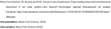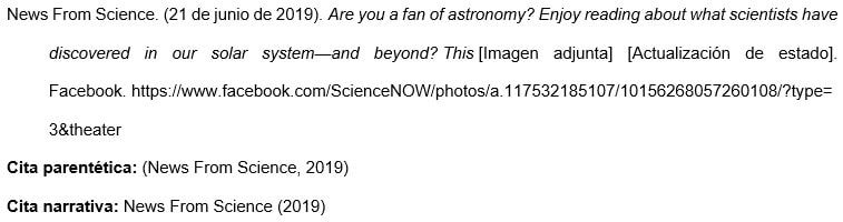 Proporcionar las primeras 20 palabras de la publicación como título. Contar un URL u otro enlace, un hashtag o un emoji como una palabra cada uno e incluirlos en la referencia si se encuentran dentro de las primeras 20 palabras. No colocar los emojis en cursiva.