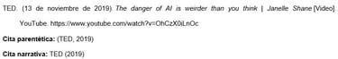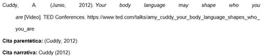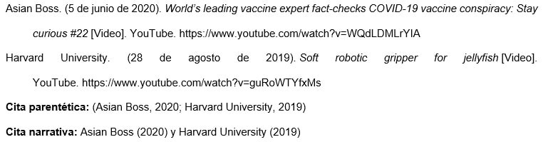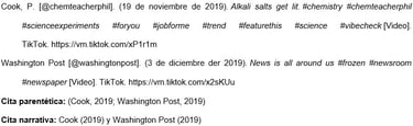 Presentar el nombre del autor individual o grupal de la misma manera que lo haría para cualquier otra referencia. Luego, proporcionar el identificador de TikTok (comenzando con el signo @) entre corchetes, seguido de un punto.