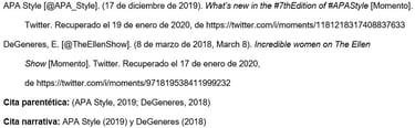 Insertar las primeras 20 palabras del tuit como título, en cursiva. Contar un URL, un hashtag o un emoji como una palabra cada uno e incluirlos en la referencia si se encuentran dentro de las primeras 20 palabras. No colocar en cursiva los emojis.