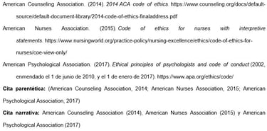 d. Referencias al Código de Ética