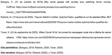 c. Referencias de artículo de diario