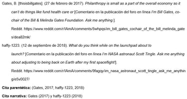 d. Referencias de foros en línea (por ejemplo, Reddit)