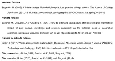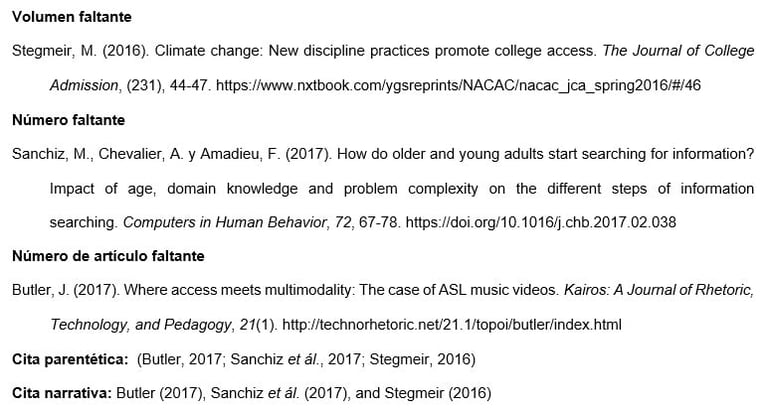 Artículo de revista con información faltante