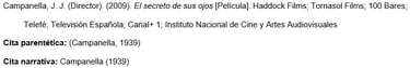 j. Referencias de transcripción de una obra audiovisual