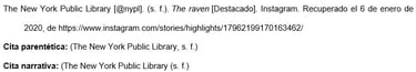 Insertar las primeras 20 palabras de la leyenda como título. Contar un URL u otro enlace, un hashtag o un emoji como una palabra cada uno e incluirlos en la referencia si se encuentran dentro de las primeras 20 palabras. No colocar los emojis en cursiva.