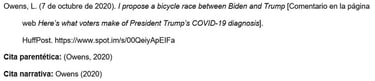 Terminar con el nombre del sitio (por ejemplo, Reddit) y el URL del comentario.
