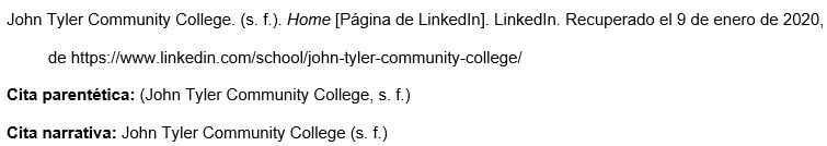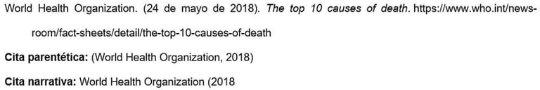 Para una página del sitio web de una organización, sin autores individuales, usar el nombre de la organización como autor.