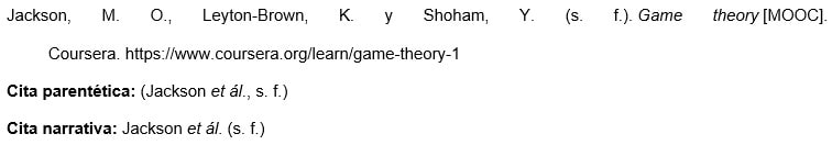 e. Referencias de cursos en línea o cursos masivos abiertos en línea (MOOC)