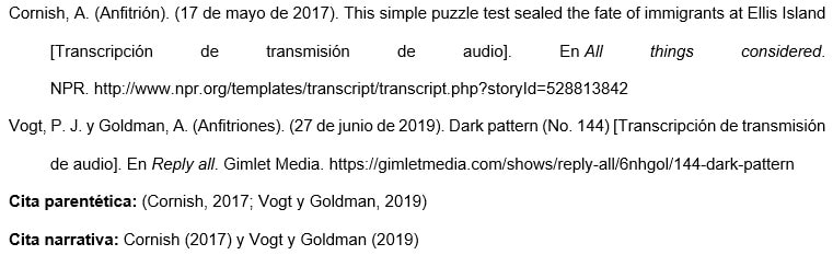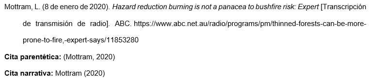 Transcripción de transmisión de radio