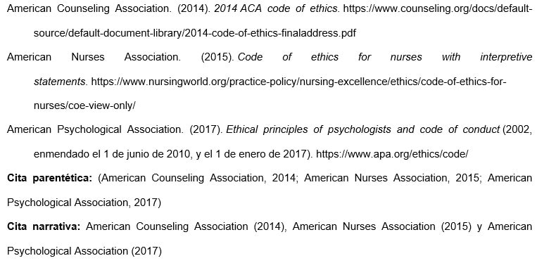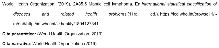 En el caso de un grupo identificado por una abreviatura (como en el ejemplo de CDC), usar el nombre del grupo como se muestra en el trabajo, para facilitar su recuperación.
