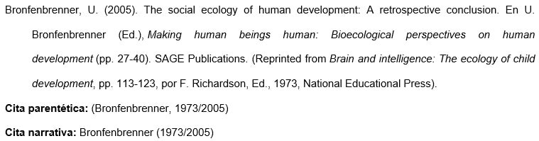 Capítulo de un libro editado, reimpreso de otro libro