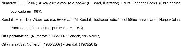 c. Referencias de libros para niños u otros libros ilustrados