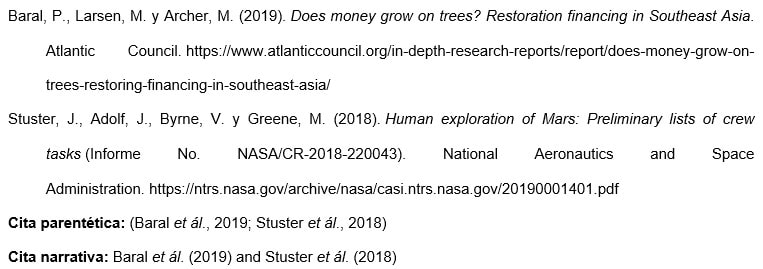 b. Referencias de informe con autores individuales