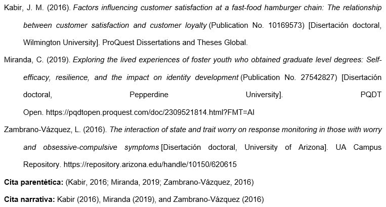 b. Referencias de disertaciones o tesis no publicadas